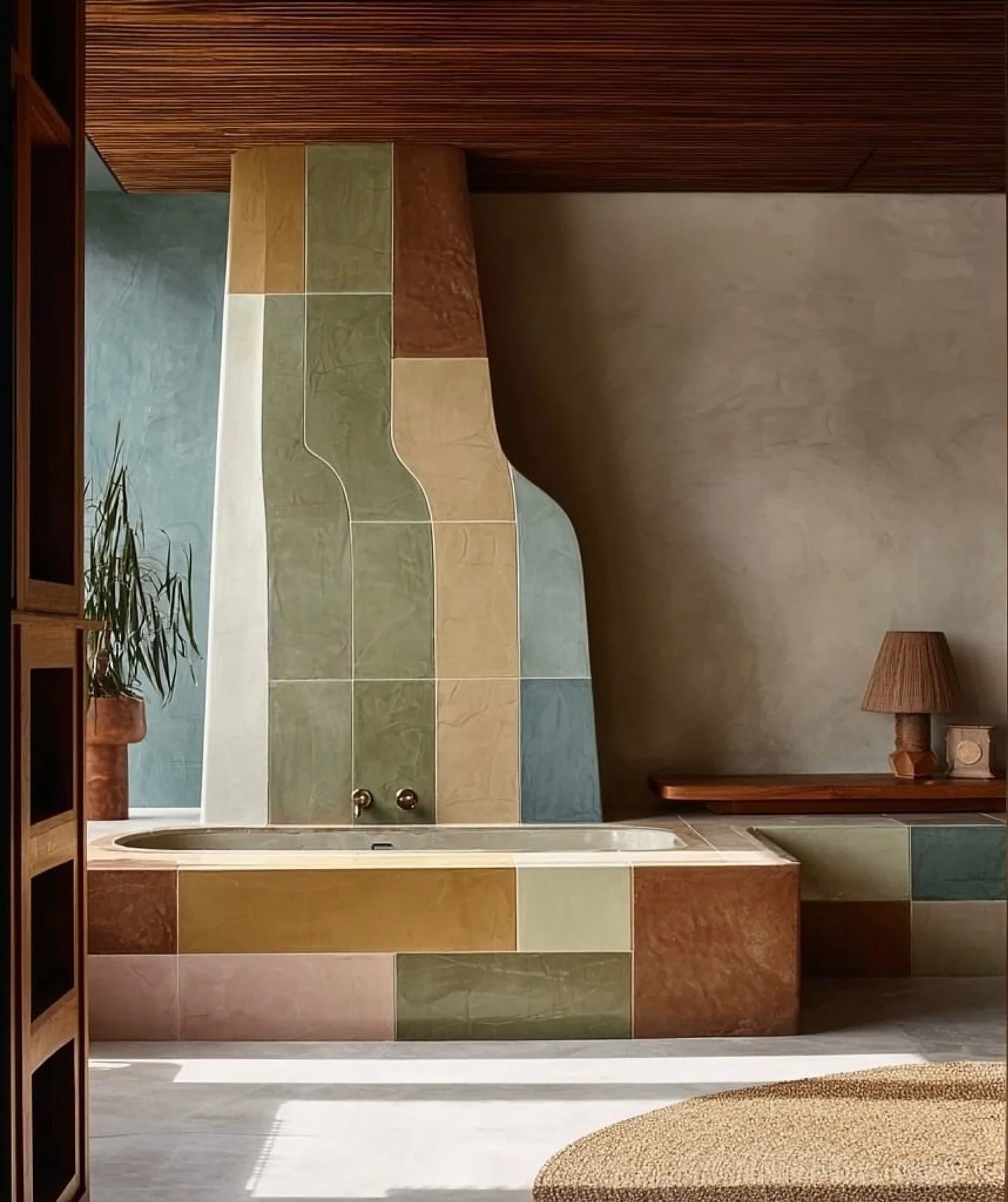 View fullsize This bathroom design stopped us in our tracks! Playful, artful, unexpected, inspired an calming. All the things we strive for in good design.